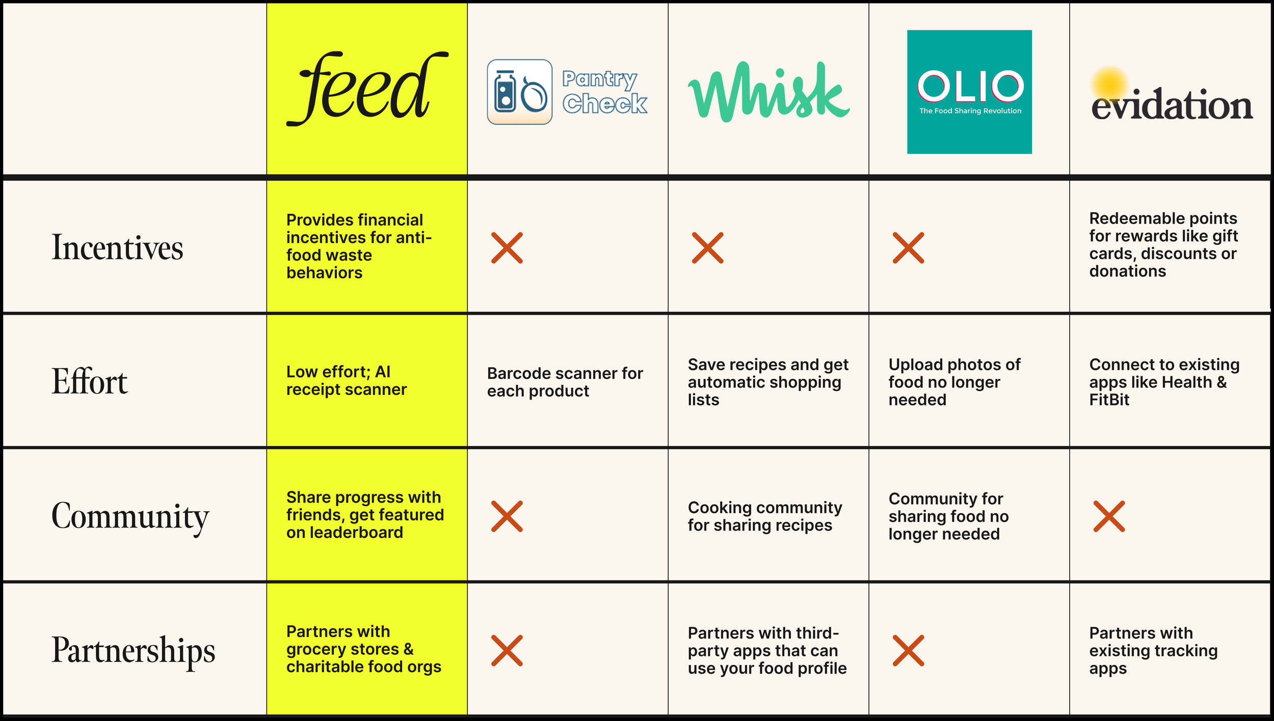 What are the current issues that lead to food waste behaviors and how does feed aim to solve them?